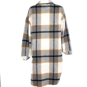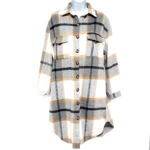 Plaid Flannel Button Long Shacket Shirt Jacket Peacoat Trench Coat Small