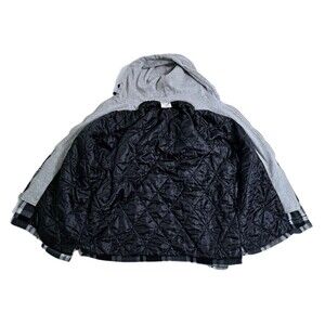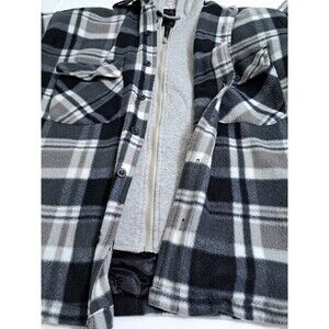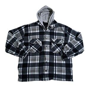 Plaid Flannel Men's Large To Medium Jacket Hooded Quilted Lining Shacket Black