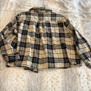 Cozy plaid flannel shirt featuring black and cream colors. Perfect for casual wear.