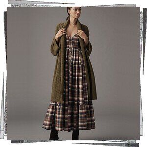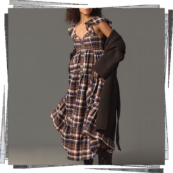 Plaid Flutter-Sleeve Button Front Tiered Midi Dress (XS) by Pilcro