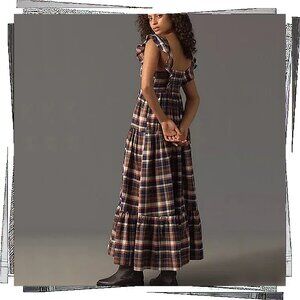 Plaid flutter sleeve button-front tiered midi dress. I wore this a few times and it's in new condition