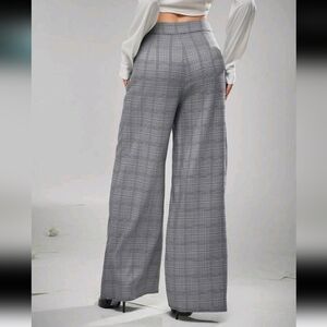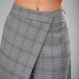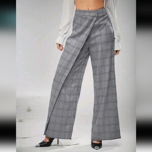 Plaid Fold Asymmetrical Wide Leg Pants