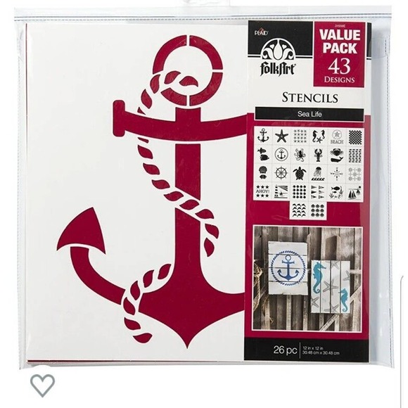 NEW Plaid Folk Art STENCIL Set - 26 Piece 43 Sea Life Design Stencil Set. 12x12 Designs. Durable and Reusable. Great for personalizing your craft or home decor project. ( Each stencil has to be punched out)