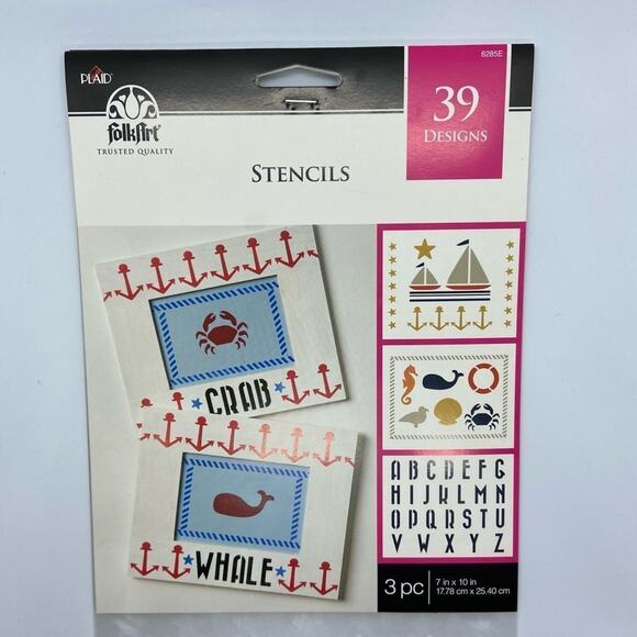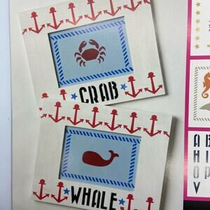 Each stencil measures approximately 7 inches by 10 inches, providing ample space for detailed designs. They are made of durable, high-quality plastic, ensuring long-lasting use and enjoyment. The designs include a delightful variety of themes such as: Crabs, Whales, Letters, Boats, Anchors, and so much more!
