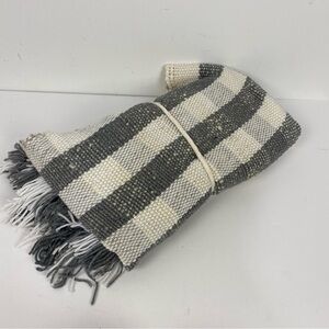 Plaid Fringe Edge Grey & White Throw Blanket Minimalist Modern House Decor