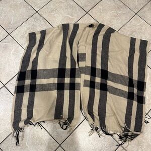 Plaid Fringe Scarf Poncho in Beige and Black OS