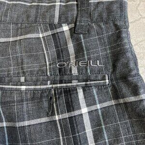 Plaid Grey O’Neil Embroidered Shorts Good Material with Multi-Pockets No Flaws #o’neil #shorts #plaid #black #grey