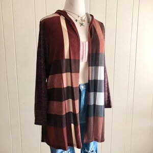 Plaid Hooded Cardigan Sweater Plus Sizes 1X 2X or 3X
