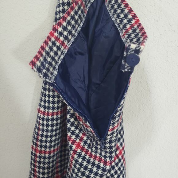 Plaid Houndstooth Pencil Skirt Womens 10 Navy Blue Red Plaid Preppy Offi…