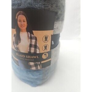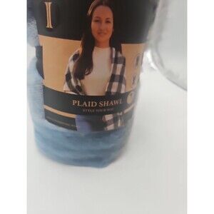 Plaid Igloos Womens Shawl (Blue/Gray/Black)