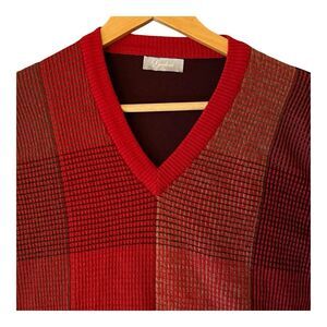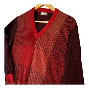 Plaid Italian Wool Knit Sweater Siren Red Medium Academia Preppy Holiday Goth