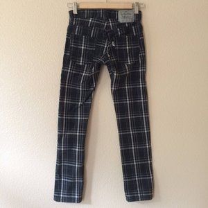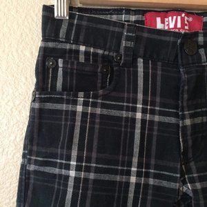 Black and white plaid jeans from Levi's. Girls size 10 regular. Very good preowned condition. Super Skinny 510 five pocket style jeans. Button and zipper close. Cotton spandex blend.