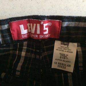 Plaid Jeans Levi's 10 Girls Black White Denim Super Skinny 510 Pants
