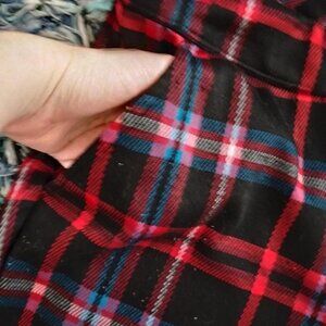 Plaid leggings in black, red, and blue with a stretchy waist and pockets and the front and back. #Punk #emo #scene #goth #plussize . Size XXL. There is some pilling. Worn by me. Clean. The brand is SO from Kohl's. High rise.