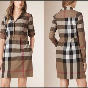 Was a gift from my parents and is not my style! Worn once, excellent condition! Stylish plaid shirt dress with long sleeves. Features a mix of black, white, brown, and pink colors.