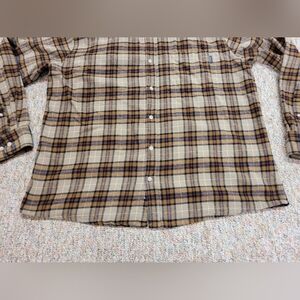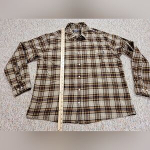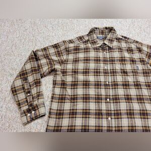 Stylish men's plaid shirt featuring a classic brown and tan color scheme. Perfect for casual outings or a smart-casual look.