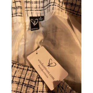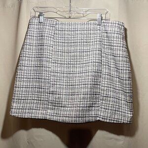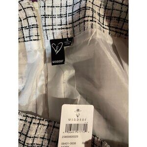 Plaid Mini Skirt By Windsor In Black & White /silver Metallic NWT Tweed - Size L