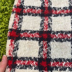Super cute and flattering textured plaid mini skirt from Anthropologie. Tight fitting. White, navy, and red. Size xxs. Worn but no flaws. Message me with questions!