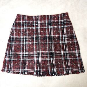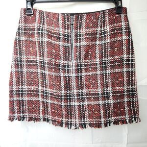 Plaid Mini Skirt Tweed Gold Sparkle Size M by Sanctuary Red Fringe Hem Academia