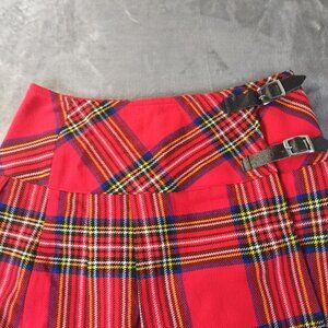 Plaid Mini Skirt Women’s Size 28 Red Tartan Punk Wool Buckle Y2K Grunge Academia