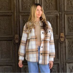 Plaid Mohair Shacket Striped Long Button Down Flannel