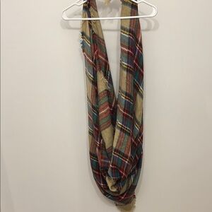 Stylish plaid scarf with a mix of colors. Perfect for adding a pop of color to any outfit.