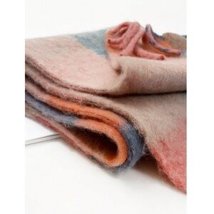 Plaid Multicolor Wide Shawl Scarf With Tassels Fuzzy Knit