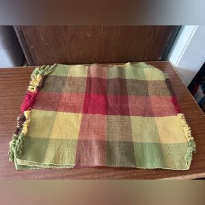 Enhance your dining experience with this vibrant plaid placemat (set of 4). Featuring a blend of red, green, and brown, it adds a touch of elegance to any table setting.