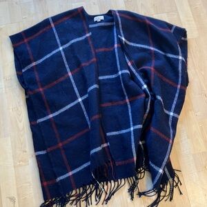 Stay cozy and stylish with this plaid navy sweater poncho. Perfect for layering, it features a classic design that complements any outfit.