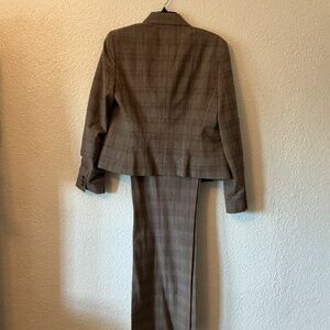 Polished plaid pant suit featuring a structured blazer and matching trousers. Perfect for office, interviews, or professional events.
