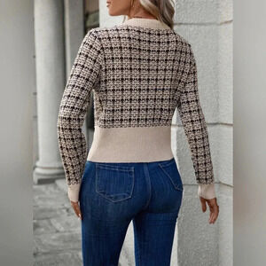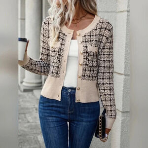 Plaid Pattern Flap Detail Button Front Cardigan