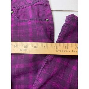 Ladies super cute purple and black plaid patterned skinny jeans by SO. Excellent condition. Ladies size 11. Material is stretchy.