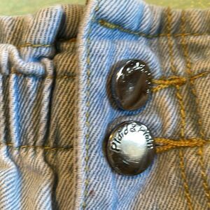 Plaid & Plain ruffle top denim jean shorts light wash size L