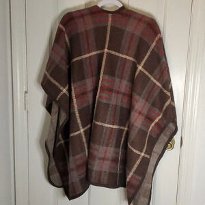 Plaid Poncho/Shawl Drape Open Front. Great colors Browns,Greys,Red and Cream