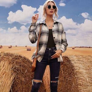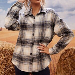✨ Plaid Print Button Up Curved Hem Overcoat✨
