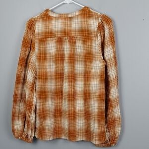 Plaid Puff Long Sleeve Button-Front Blouse- Universal Thread Size XS
