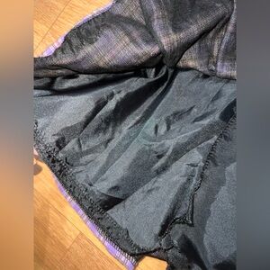 Stylish plaid skirt featuring a vibrant purple design with buckle accents. Perfect for adding a pop of color to your wardrobe.