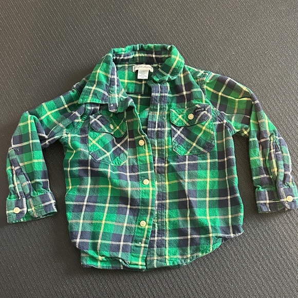 Stylish plaid shirt for kids in vibrant green and blue. Perfect for casual outings. Polo Ralph Lauren, size 24 months.