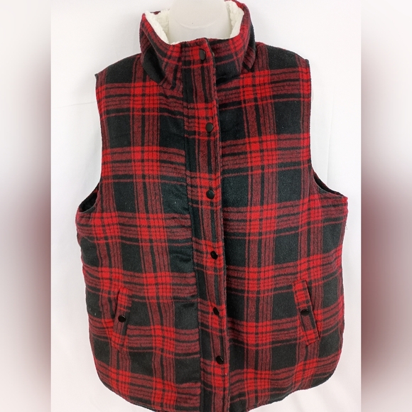 Plaid Red Black Christmas Winter Sherpa Sleeveless Vest Preppy Plus Size XXL