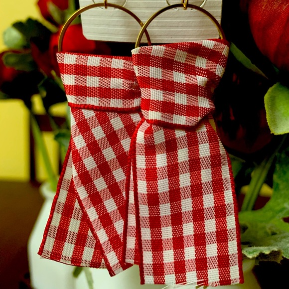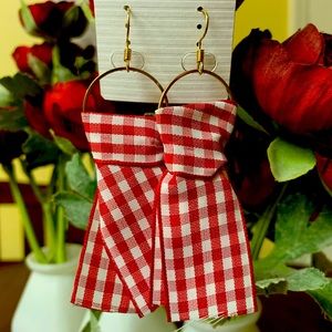 Plaid Red Ribbon Earrings