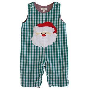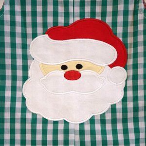 Side One: Green and White Plaid with Embroidered Santa. Roll Up the Legs to Reveal the Red and White Plaid Design.