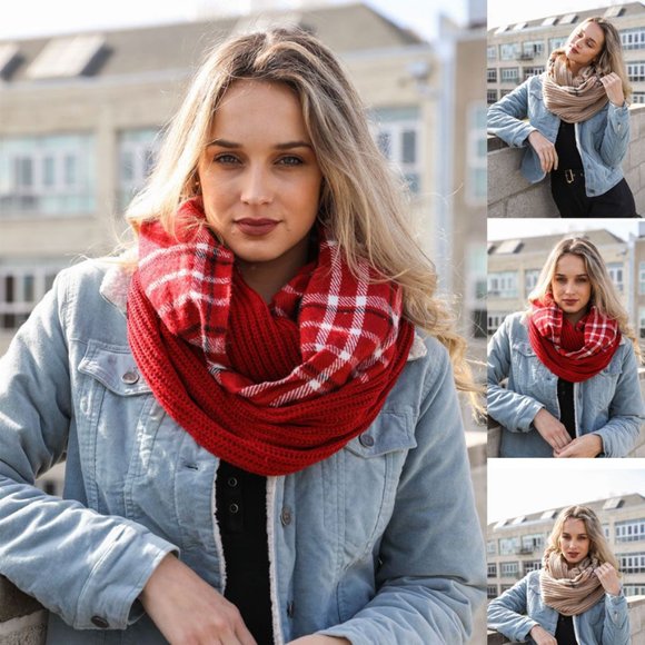 Plaid Ribbed Knit Infinity Scarf