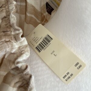 Chic plaid blouse with ruffle details. Features a drawstring neckline.