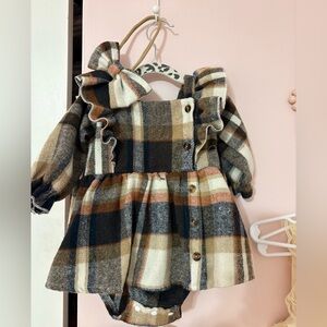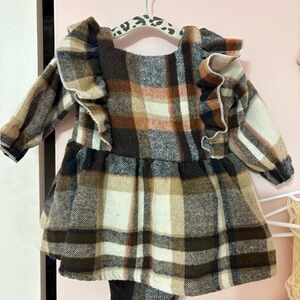 Charming plaid dress with ruffle details and button accents. Perfect for a stylish look.