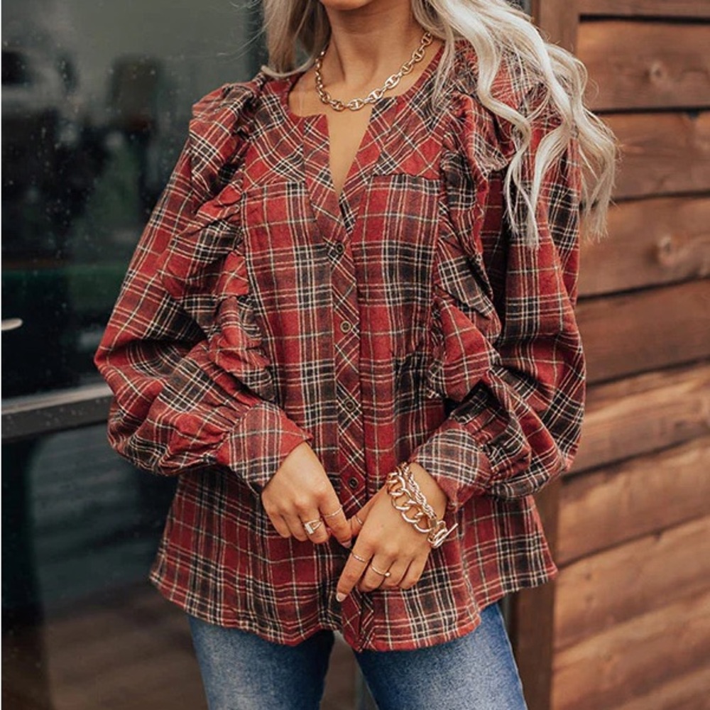 Plaid Ruffle Top
