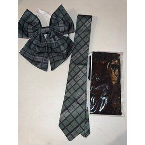 Plaid School Girl Costume Set M Includes Skirt Tie Bow & Black Thigh-High Stocki