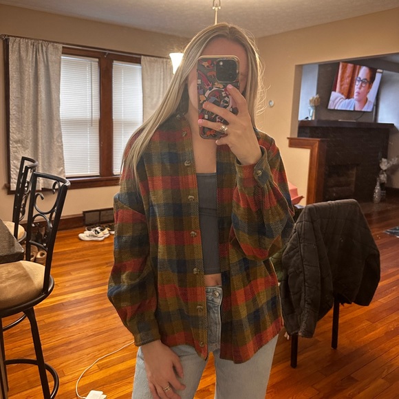 Thicker than a flannel but not as thick as a shacket. Great quality and super comfy. Great layering piece. Runs small - fits me more like a small than a medium would.