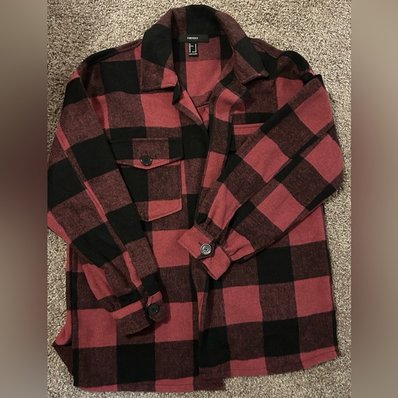 Black and pink plaid Shacket. Balloon type sleeves.