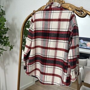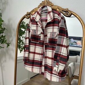 Soft but heavy plaid shacket. Over sized fit as see in pics and only worn the one time.