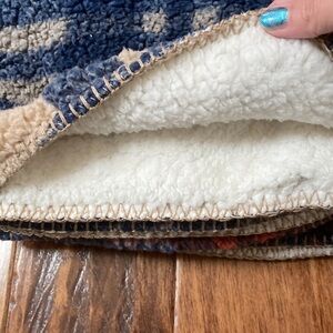 Plaid Sherpa Throw Blanket Blue & Taupe NEW